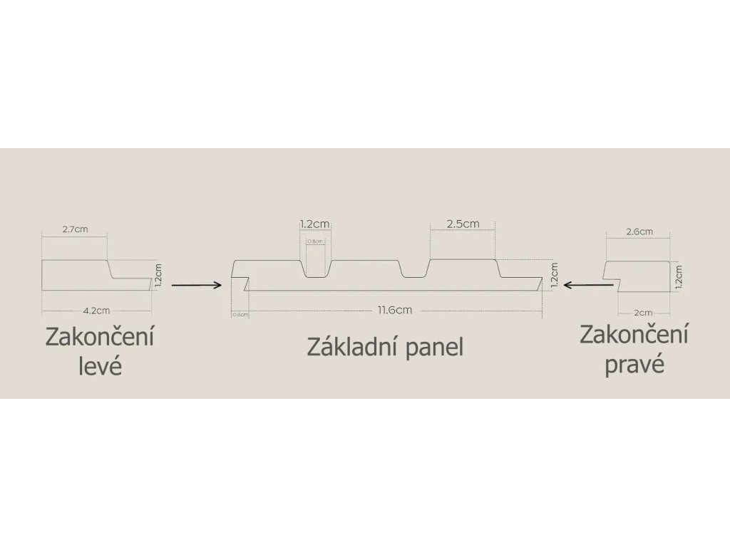 Dekorativní obkladový panel je v odstínu dub zlatý o délce 2,7 m a šířce lamely 120 mm. Materiál je velmi lehký, pevný, vysoce odolný vůči oděru a má zvukově izolační vlastnosti. Čistého ukončení obkladu docílíte použitím ukončovací lamely, je vždy pravá a levá.