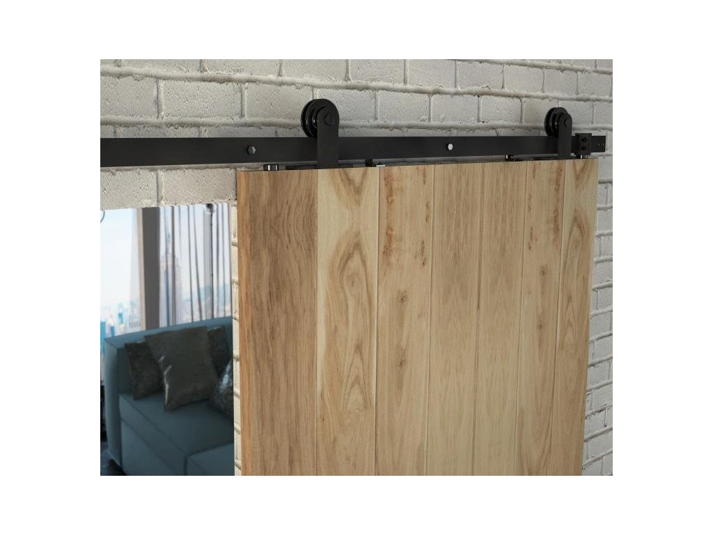 Posuvný systém Loft se používá na dřevěné dveře o maximální hmotnosti 100 kg a šířka křídla nesmí přesahovat 950 mm. Příčemž síla dveří musí být mezi 35-45 mm. Kování je v úpravě černá mat. Mezera mezi zdí a dveřmi je 47 mm - ( tloušťka dveří 35-45 mm )