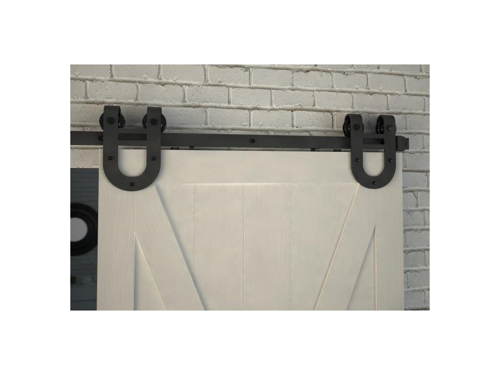 Posuvný systém Loft se používá na dřevěné dveře o maximální hmotnosti 100 kg a šířka křídla nesmí přesahovat 950 mm. Příčemž síla dveří musí být mezi 35-45 mm. Kování je v úpravě černá mat. Mezera mezi zdí a dveřmi je 47 mm - ( tloušťka dveří 35-45 mm )