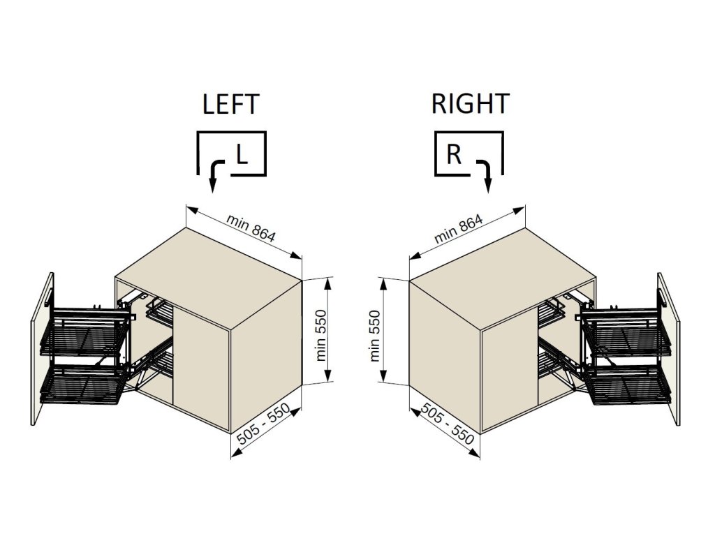 Výška korpusu min. 550 mm