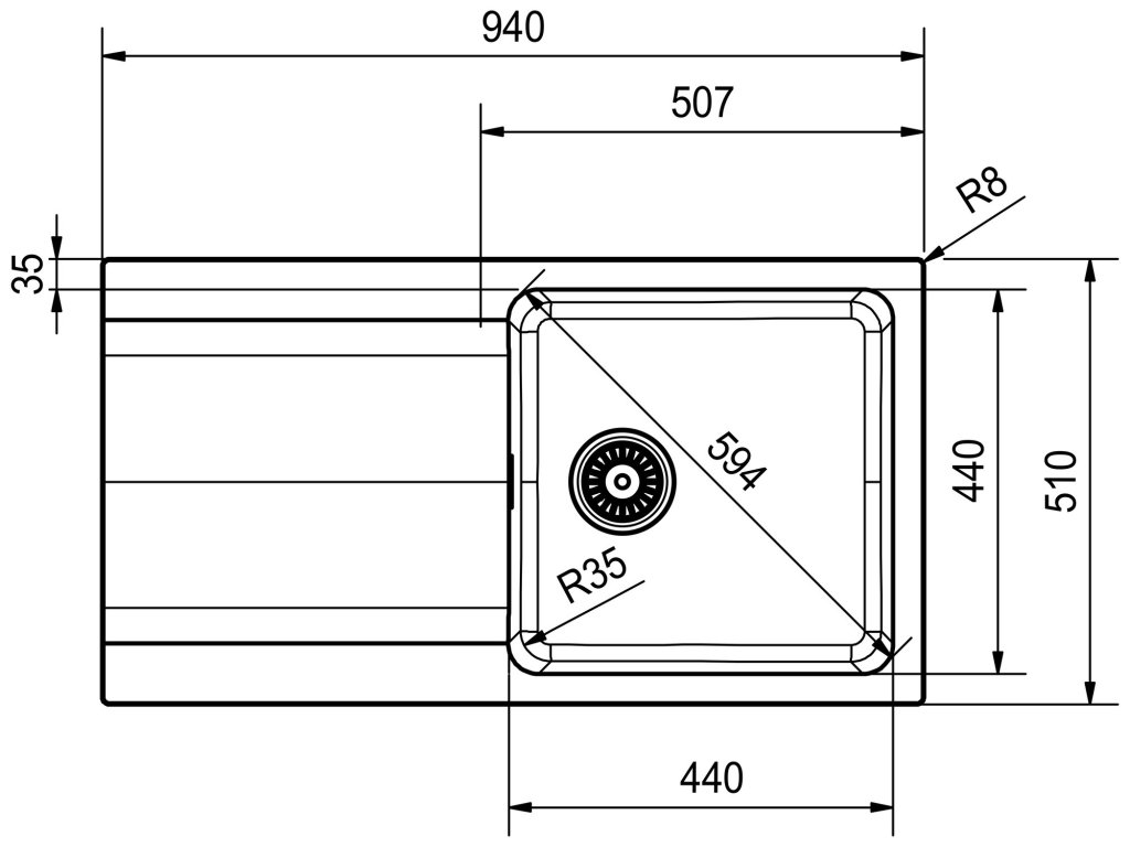 Rozměry dřezu: 940 x 510 mm