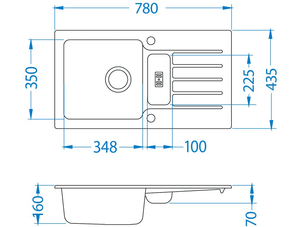 - rozměry vany: 348 x 350 x hloubka vany 160 mm, 100 x 225 x 70mm