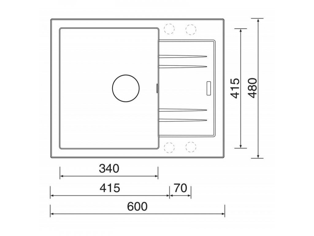 - vnější rozměr dřezu: 600 x 480 mm