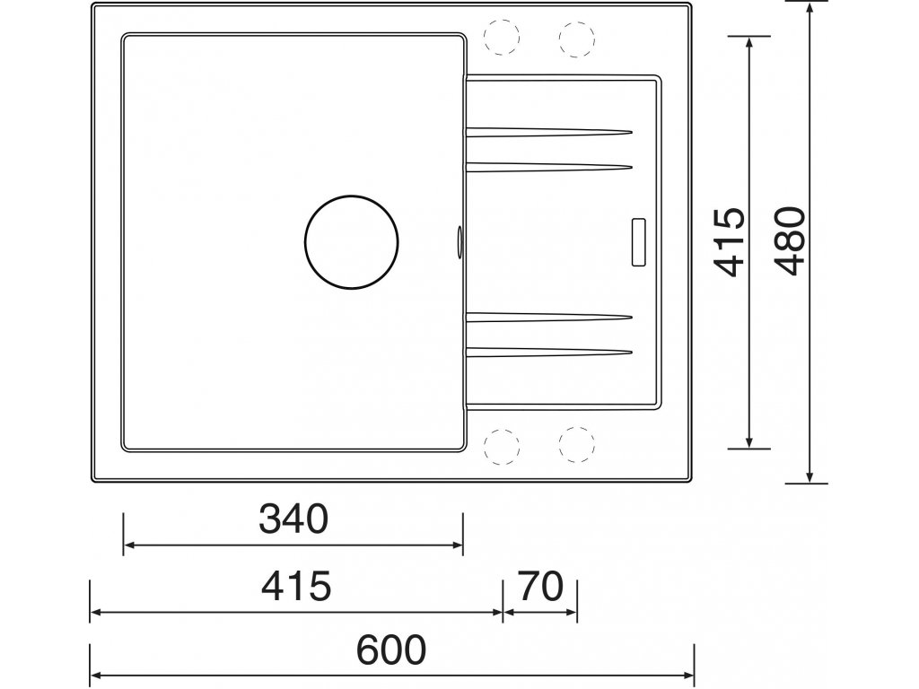 - vnější rozměr dřezu: 600 x 480 mm
