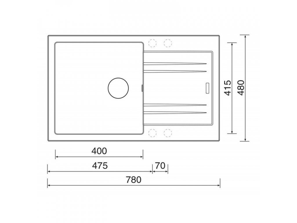 - vnější rozměr dřezu: 780 x 480 mm