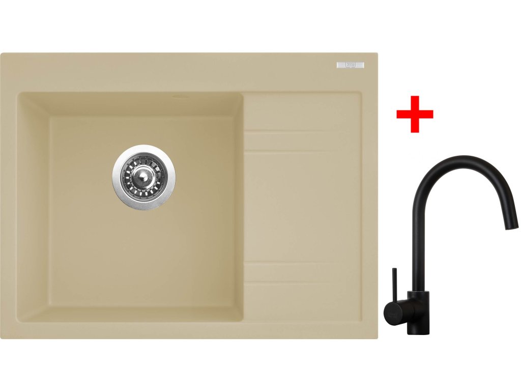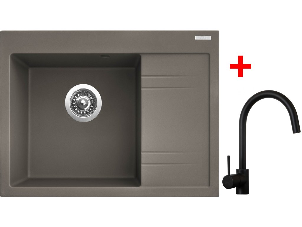 Set obsahuje dřez RIM 650 L levý s odkapem + baterii VITALIA černá matná