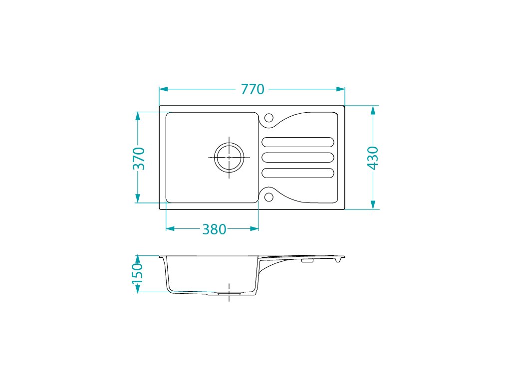 - materiál granitový dřez- rozměr dřezu: 770 x 430 mm