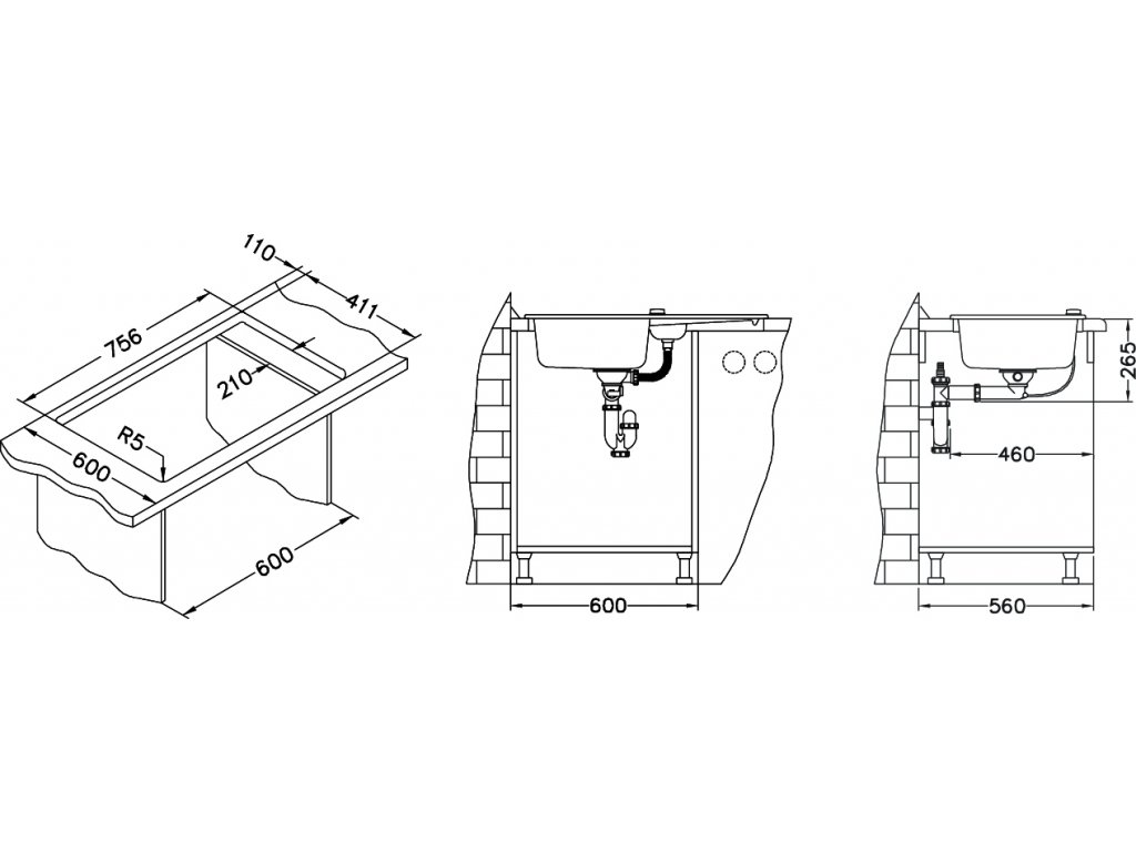 - typ montáže dřezu: standartní uložení na desku, vestavěné dřezy