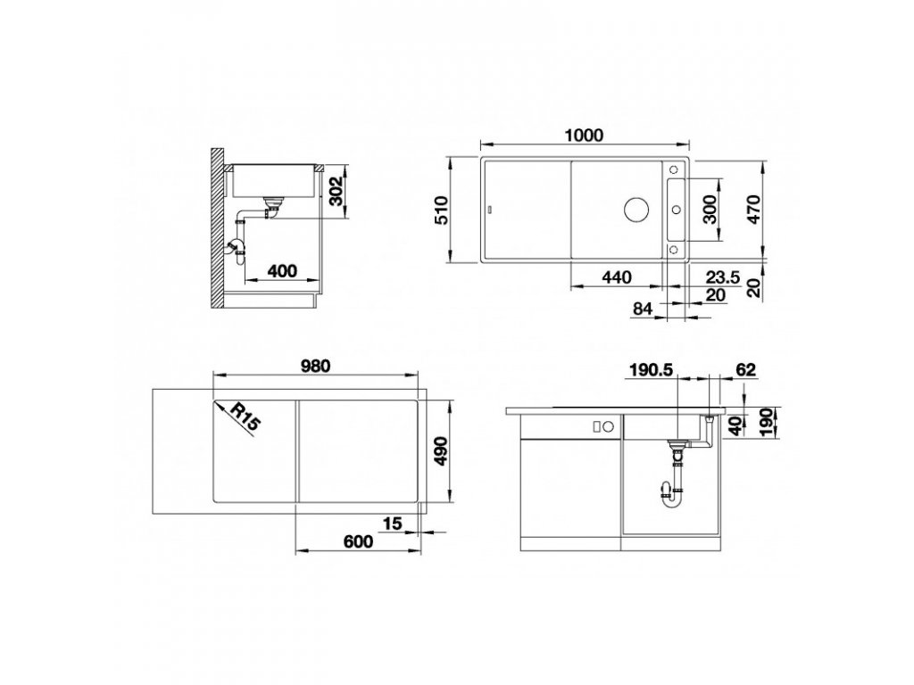 - materiál silgranit- jednodřez s vaničkou a odkapní plochou