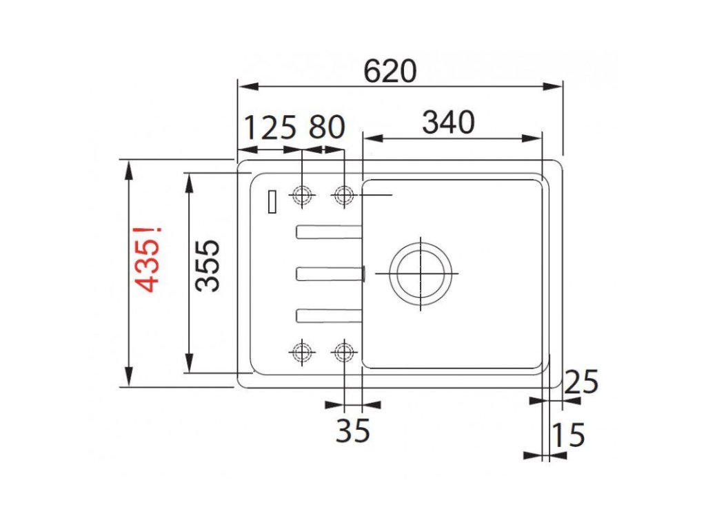 Dřez: 340 x 355 mm