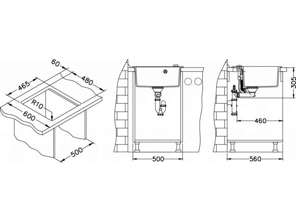 - typ montáže dřezu: standartní uložení na desku, vestavěné dřezy