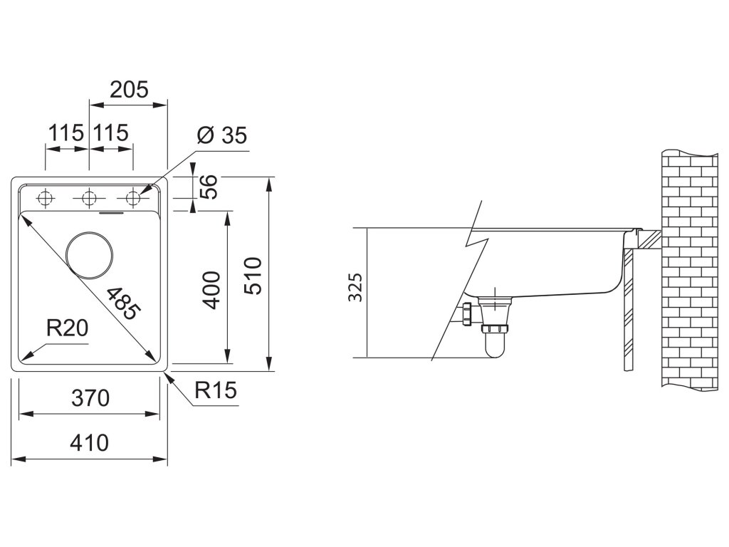 Rozměry dřezu: 410 x 510 mm