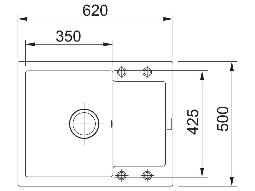 Dřez z výroby bez otvorů, nutno zhotovit otvor pro baterii.