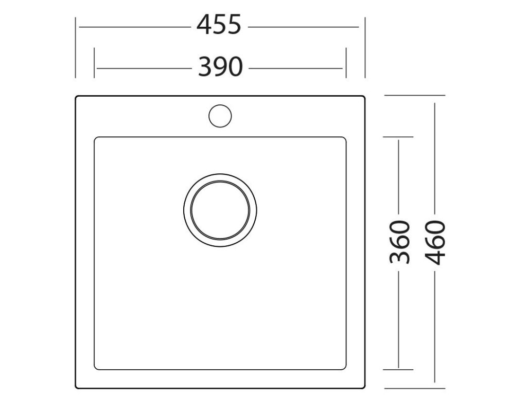 - materiál granitový dřez- vnější rozměr dřezu: 455 x 460 mm