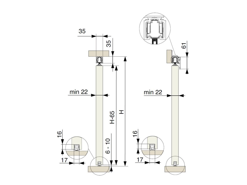 V případě montáže horní kolejnice na zeď, je nutné doobjednat boční držáky, nebo profil pro montáž na zeď a kryt profilu pro montáž na zeď černý.