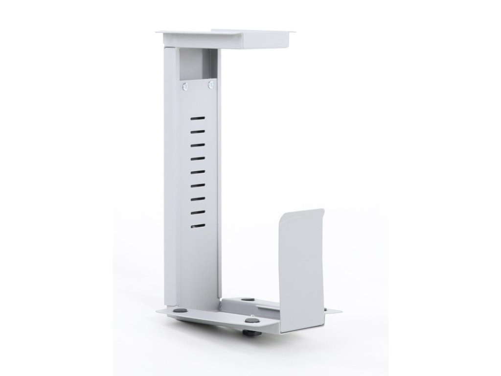 Praktický držák na počítačovou skříň určený pro montáž pod stolovou desku šetří místo a chrání PC před prachem.