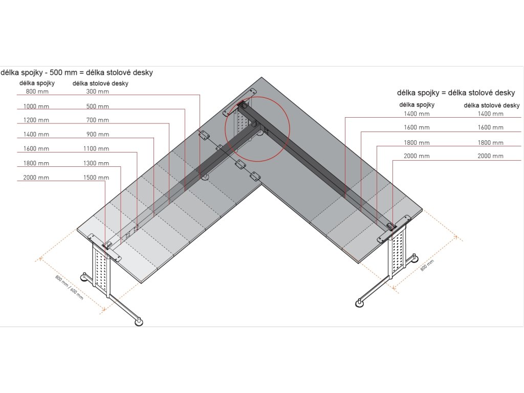 - díky velkému množství doplňků lze sestavovat různé tvary kancelářských stolů, jako například rohové nebo do kříže