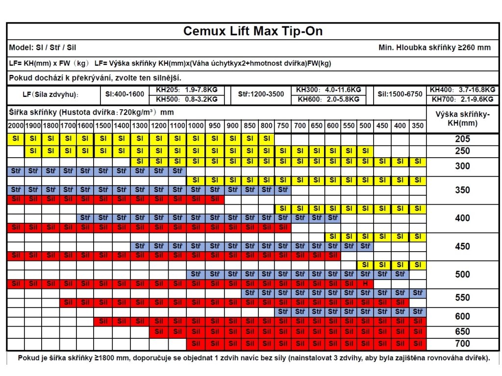 Cemux výklop LIFT MAX TIP-ON H silný na dvířka do 700 mm antracit
