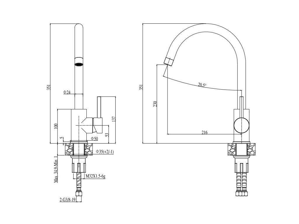 - rozměr š.216 x v.351 mm- vodovodní stojánková baterie otočná