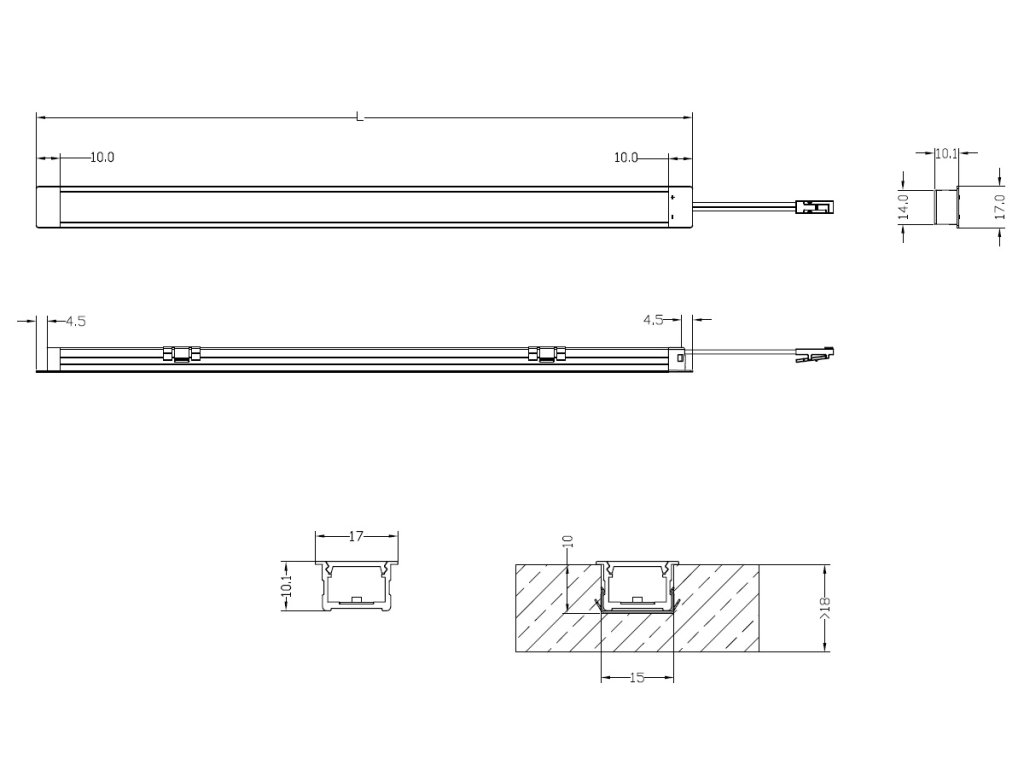 Profil je vhodný ke krácení po 7 mm a instalaci bez možnosti pájení.