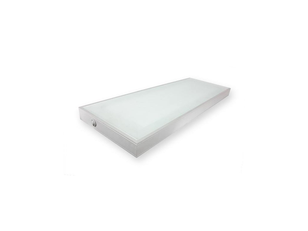 LED světelné police 40mm elox s vypínačem, 1x LED dolů, 1x LED do skla, kalené satinované sklo.