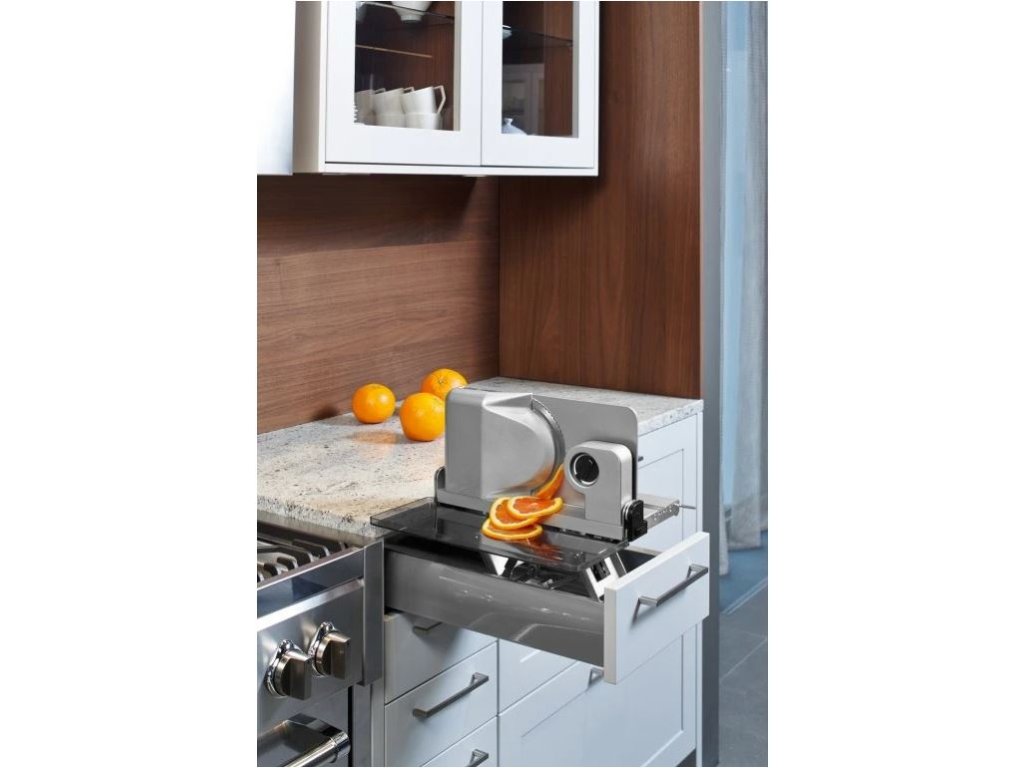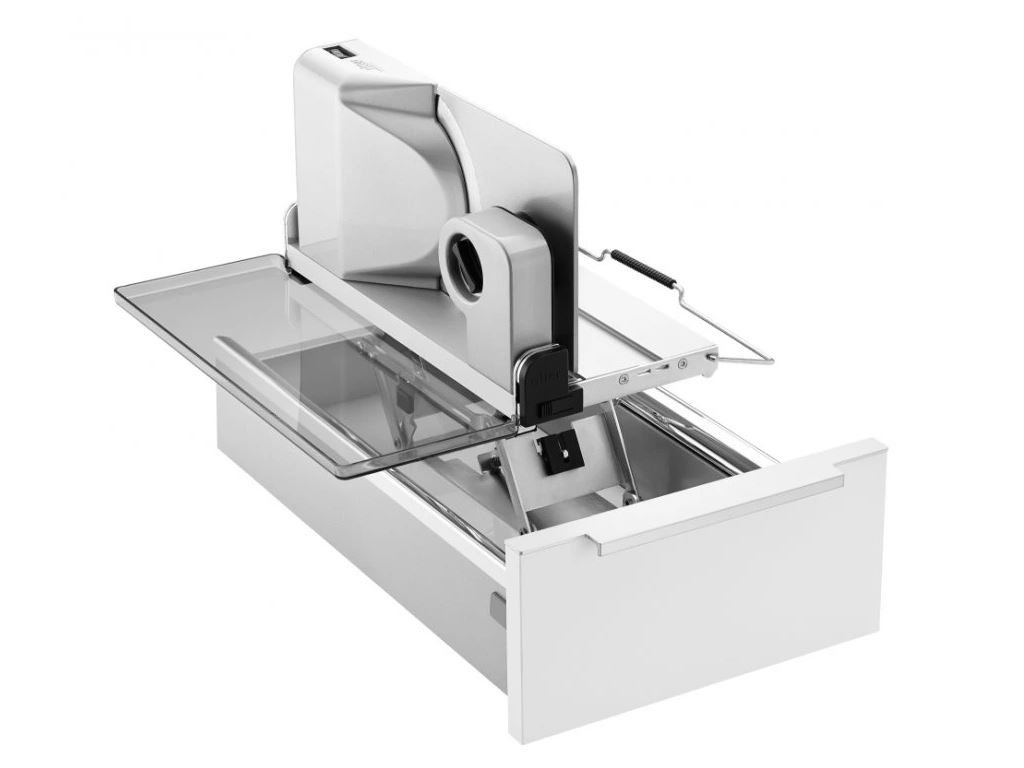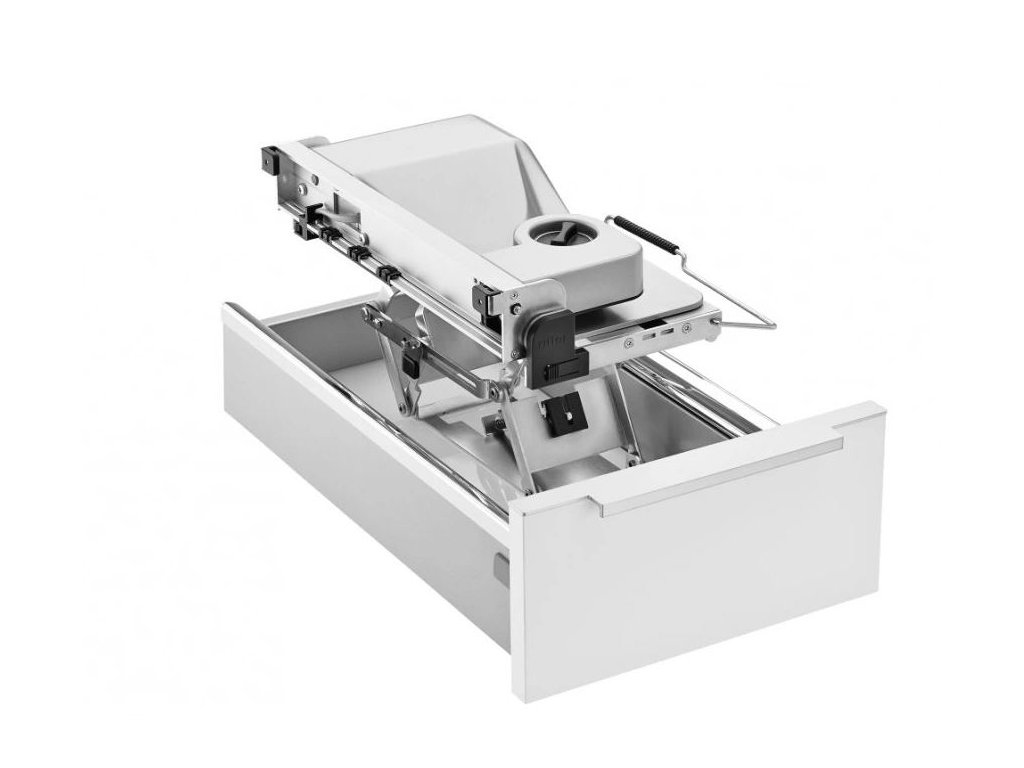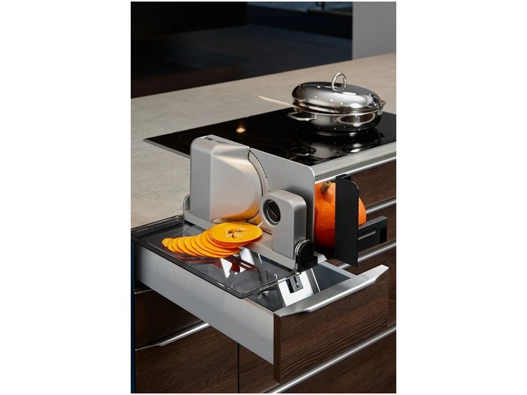 - Uvolní místo na lince - kráječ je uložený skrytě v zásuvce.