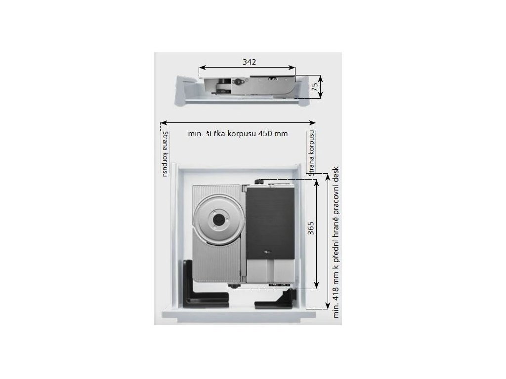 Instaluje se přímo do zásuvky od šířky 45 cm, (světlá hloubka min. 344) takže je dokonale skrytý a přitom kdykoli připravený k použití.