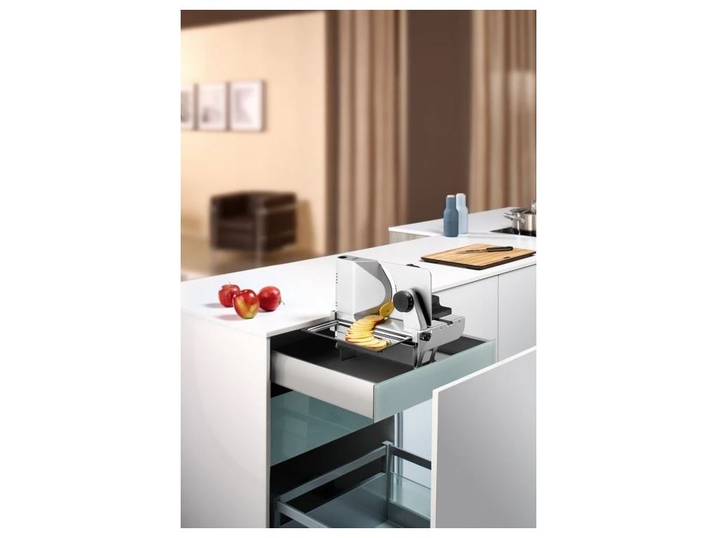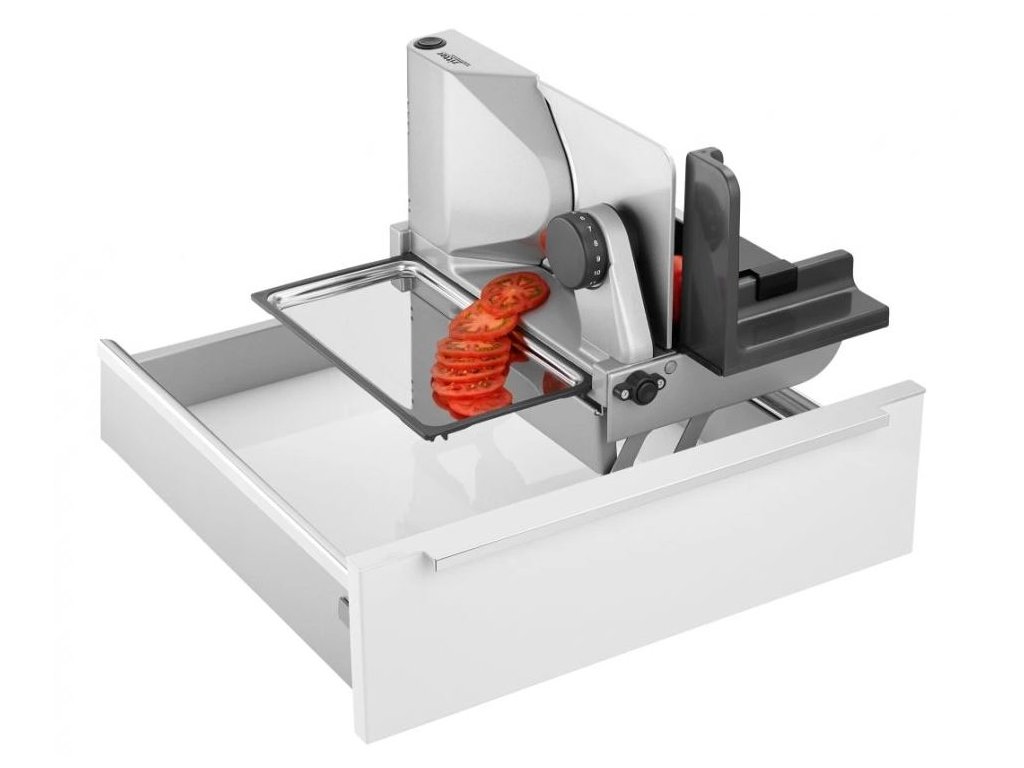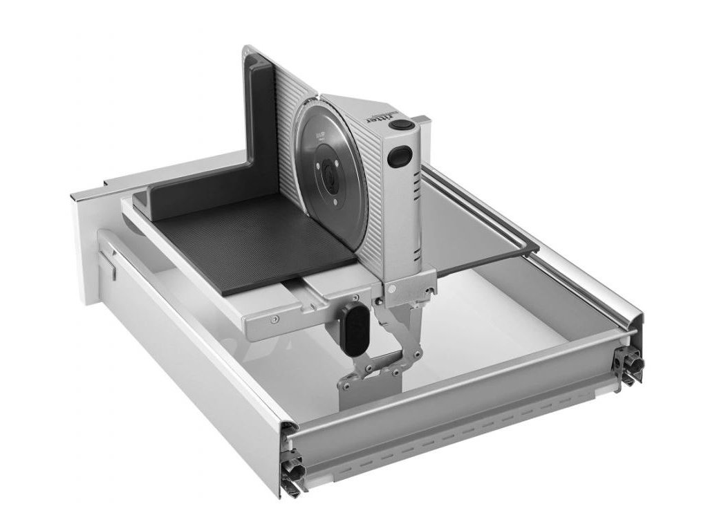 - Uvolní místo na lince - kráječ je uložený skrytě v zásuvce.