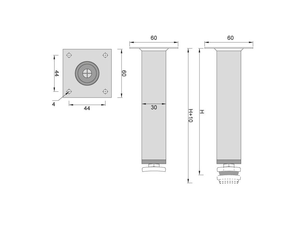 Díky regulovatelné výšce 10 mm umožňuje snadné dorovnání nerovností podlahy a zajišťuje perfektní stabilitu nábytku.