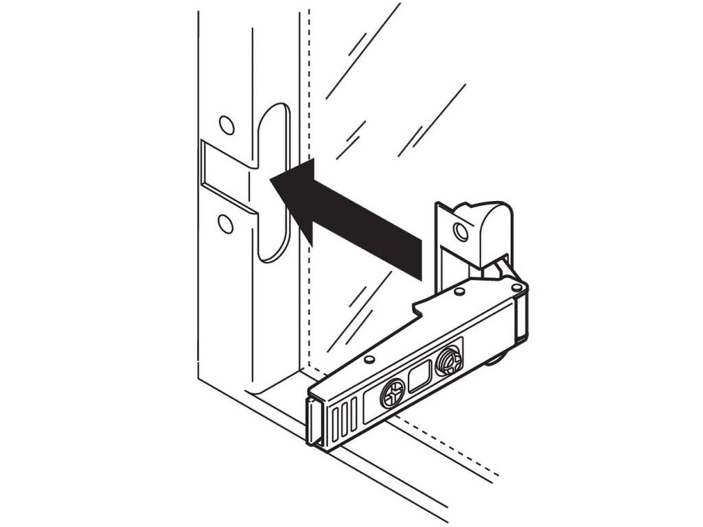 Seřízení dvířek ve dvou směrech na závěsu.