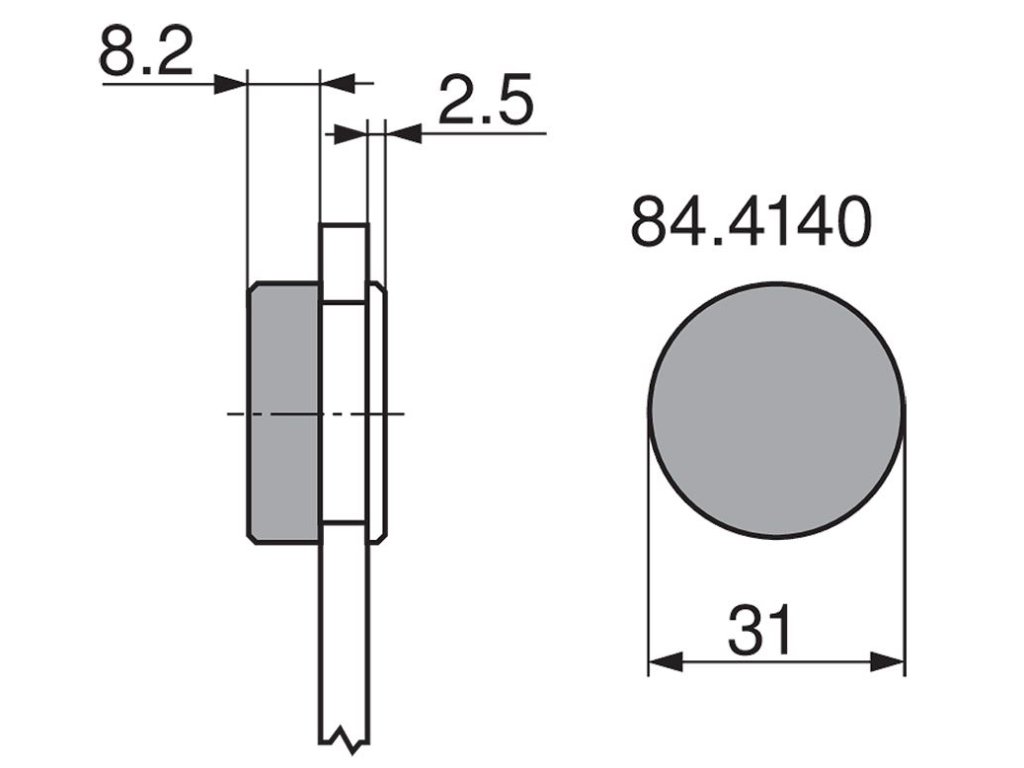 - Rozměry krytky: 31 x 8,2 mm (průměr x výška)