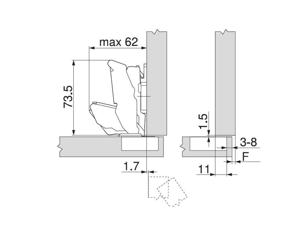 BLUM 70T7590.TL CLIP TOP závěs 155° naložený inserta TIP-ON