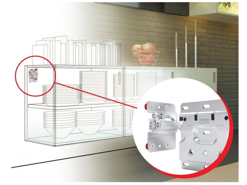 Lze nastavit horizontálně a vertikálně a seřídit tak horní skříňku do absolutní roviny.