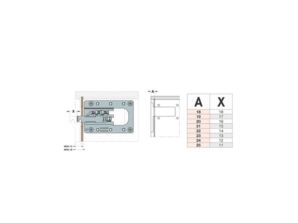 Rektifikační závěs umožňuje zavěšení horních skříněk, provedení XL RV je zejména vhodné pro hluboké korpusy,