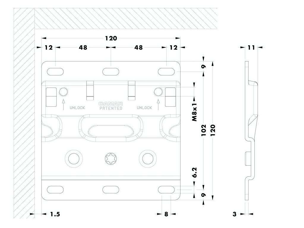 Rektifikační závěs CAMAR 807 XL závěsný plech