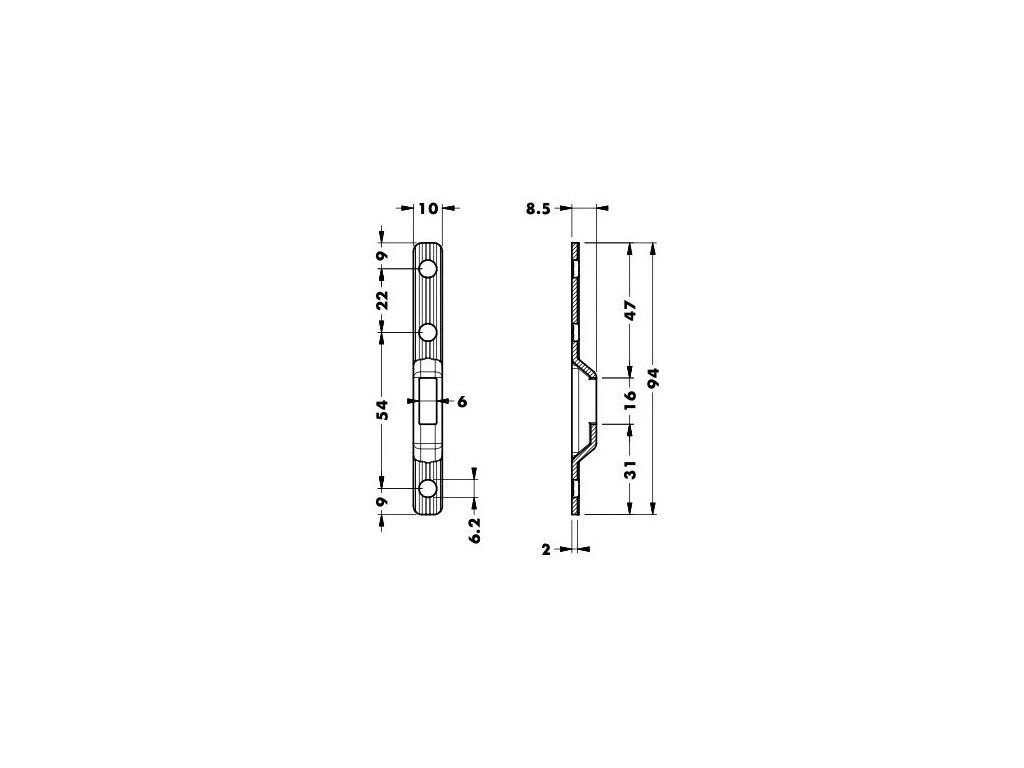 Závěsný plech je určen k zavěšení horních skříněk. Plech splňuje podmínky bezpečného zavěšení.