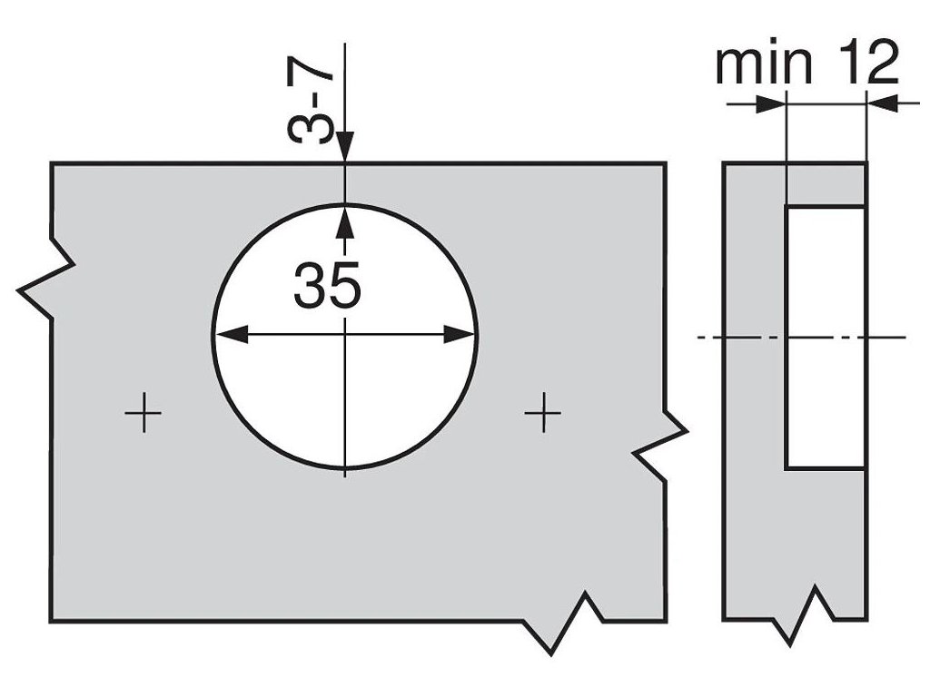 - Seřízení hloubky (vzdálenost od korpusu) dvířka: +2/-2 mm