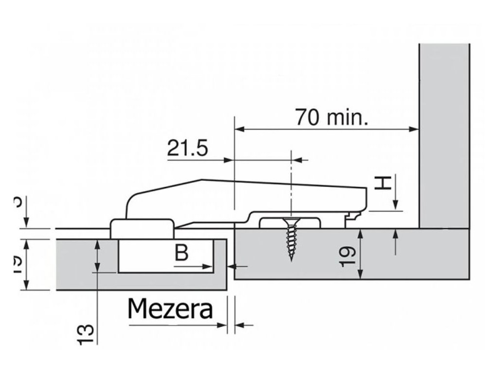 - Seřízení hloubky (vzdálenost od korpusu) dvířka: +1/-1 mm