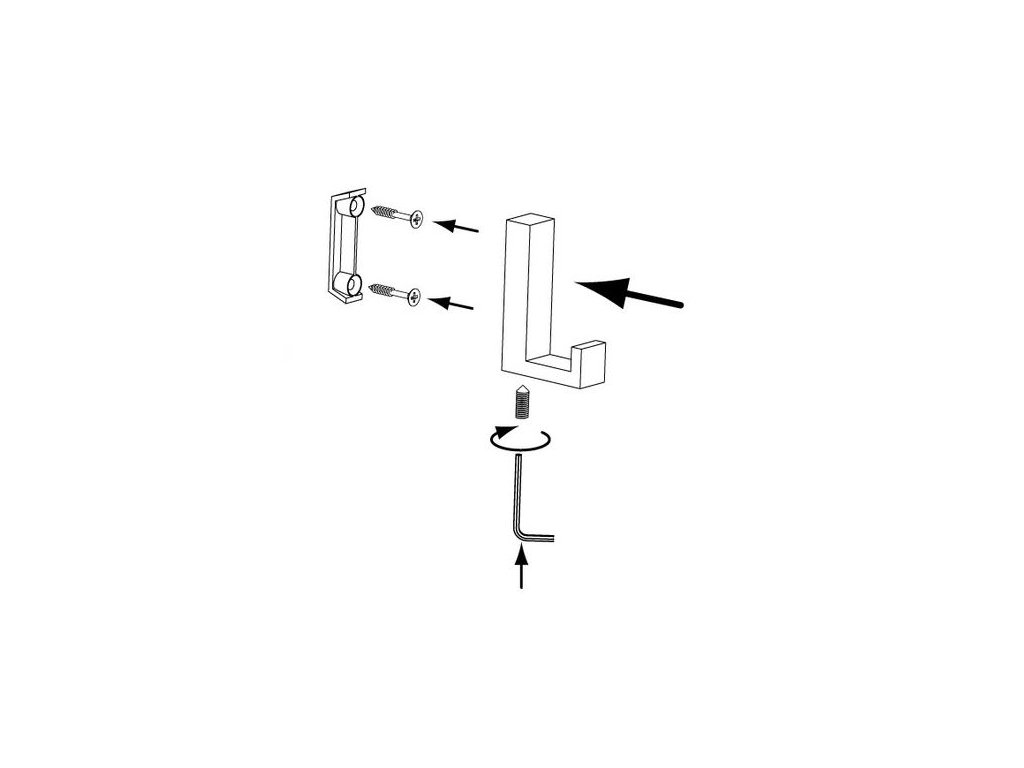 Montáž věšáku Kara je velice snadná. Z věšáku vyndáme montážní destičku, kterou přiděláme k podkladu (nábytek, dřevo, zeď) pomocí šroubů. Následně věšák nasadíme na destičku a připevníme.