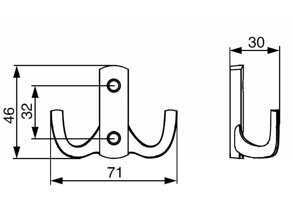 Z přední strany věšáku jsou 2 otvory, kterými přišroubujeme věšák šroubky k vhodnému podkladu (nábytek, dřevo, stěna).