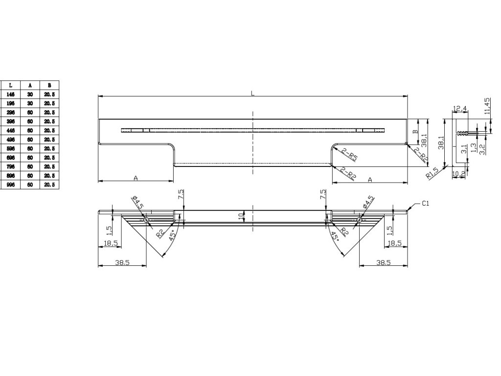 | Délka: | 996 mm, 396 mm, 446 mm, 296 mm, 796 mm, 696 mm, 896 mm, 596 mm, 196 mm, 496 mm, 146 mm |