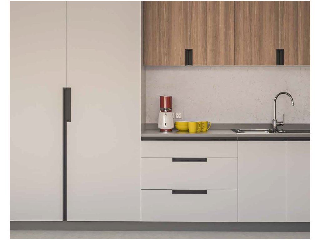Design profilových úchytek je hladký, nikde nepřečnívá a tím nedochází k zavadění úchytek o dvířka.