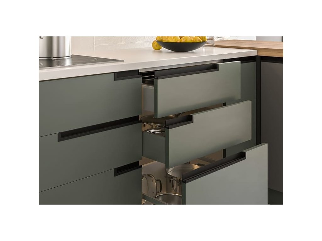 Design profilových úchytek je hladký, nikde nepřečnívá a tím nedochází k zavadění úchytek o dvířka.