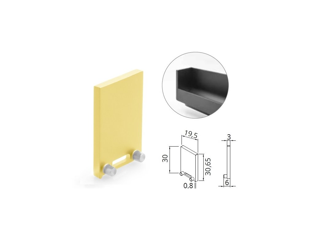 Samostatně je nutné doobjednat koncovky otevřené, nebo plné pro zakrytí konců u zkracované úchytky na míru.