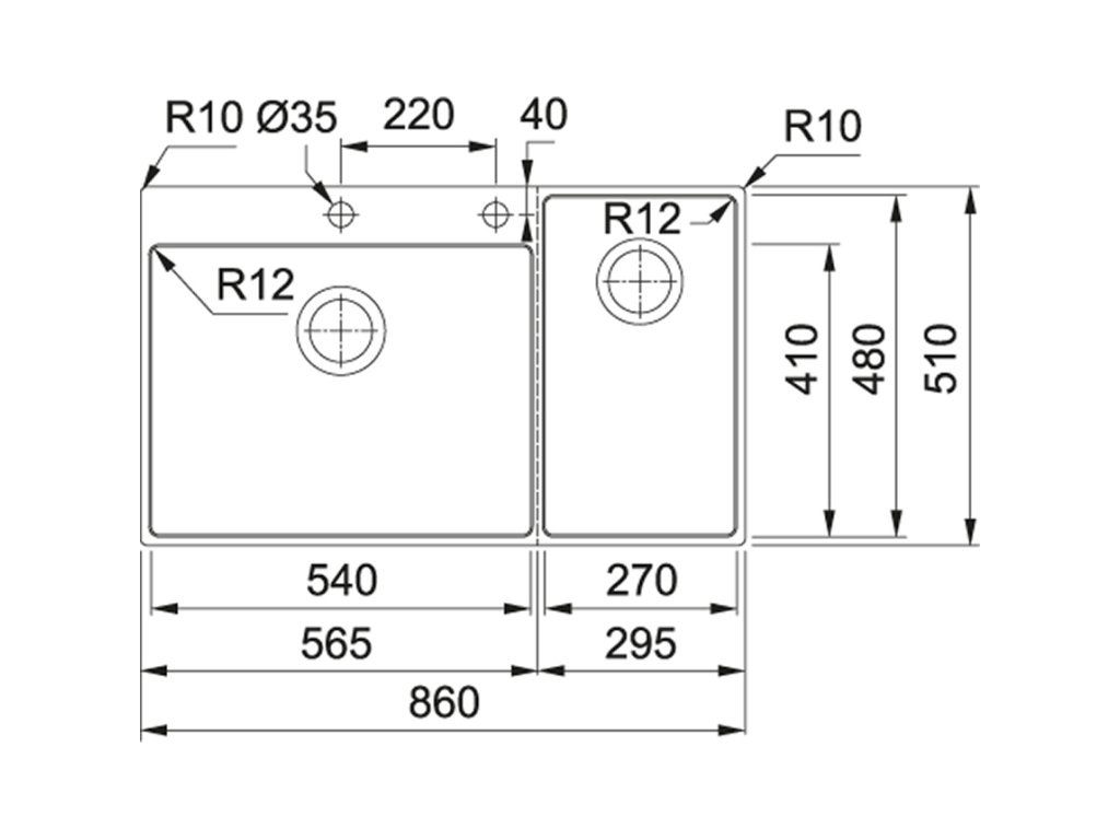 Dřez Franke BWX 220/620-54-27 nerez:Délka: 860 mm