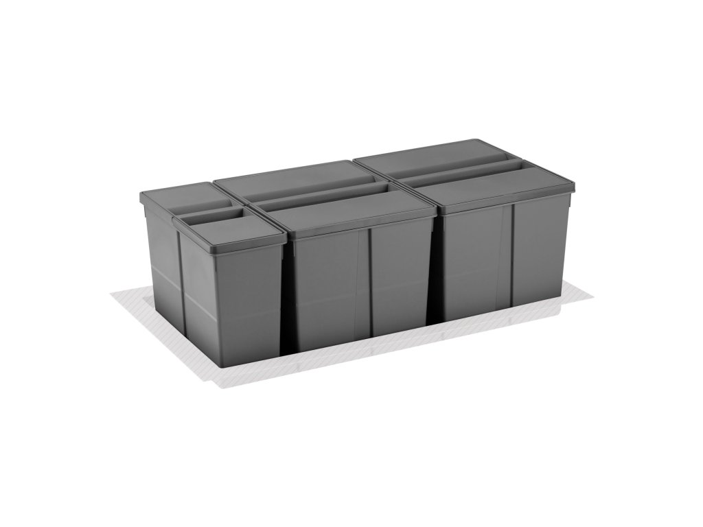 Objem plastových košů: 2 x 26 L + 1 x 11 L