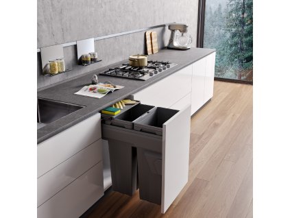 REJS odpadkový koš JC603 300 mm na dvířka 1 x 9 l + 1 x 20l šedý
