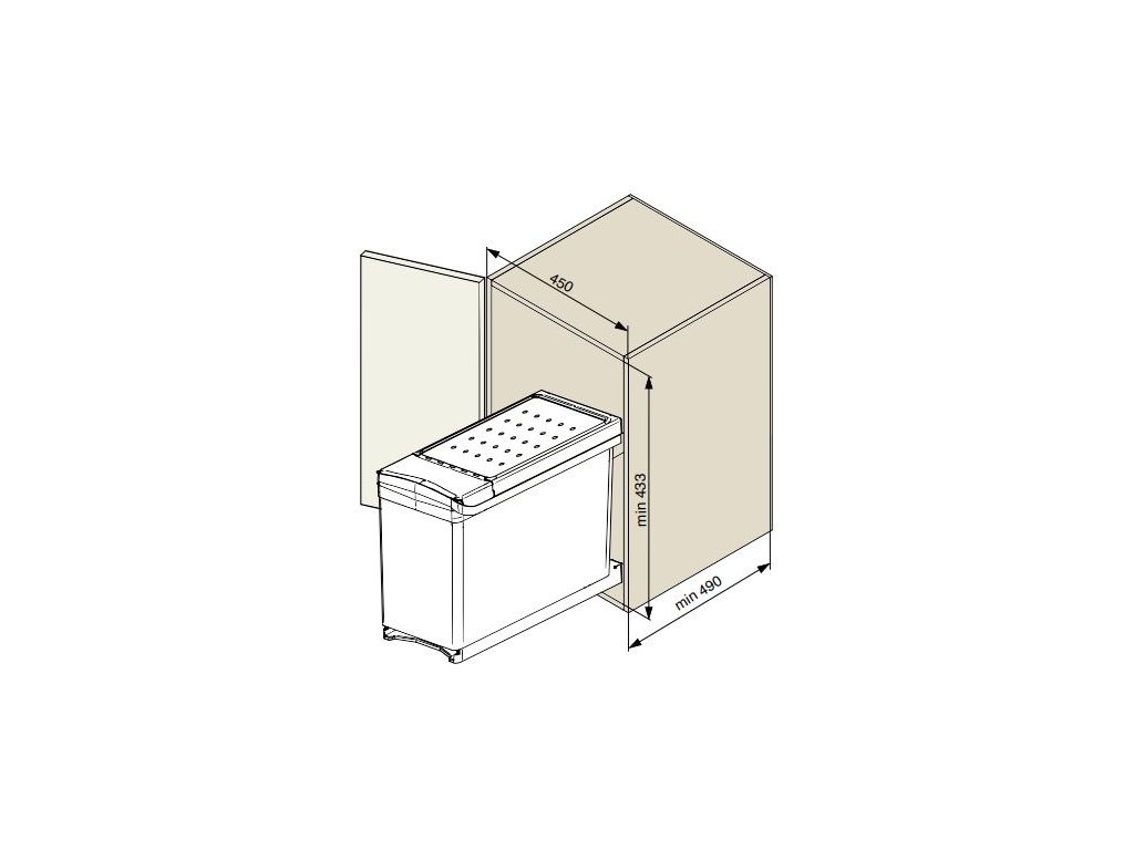 Tento odpadkový koš je určen k instalaci na dno skříňky se standardními bočně otevíranými dvířky.