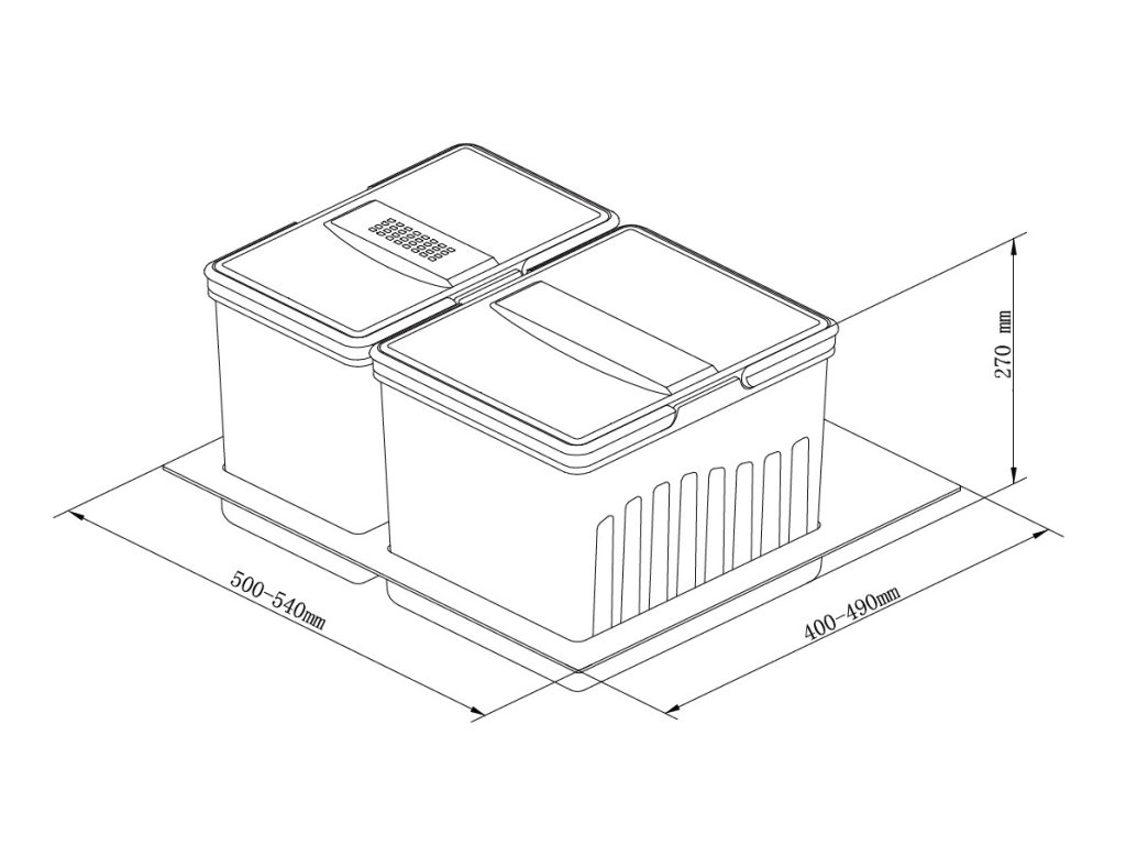 Ideální a moderní řešení pro třídění odpadu pro zásuvky pod dřez díky výšce 270 mm. Doporučujeme protiskluzný kobereček na dno šuplíku.