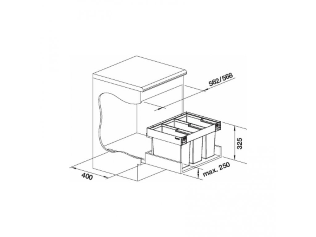 odpadkový koš BLANCO FLEXON II LOW 60/3:- výška pro zabudování 330mm (výška košů 325mm)